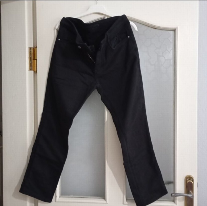 Kadınlar için siyah, kemerli, midi boy kumaş pantolon. Normal kesim ve sentetik kumaştan, günlük kullanım için uygundur. Boyu 90