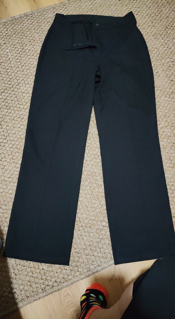 Kadınlar için siyah, kemerli, normal kesim ve midi boy kumaş pantolon. Düz desensiz, sentetik kumaştan yapılmıştır ve ofis ortamı için uygundur.