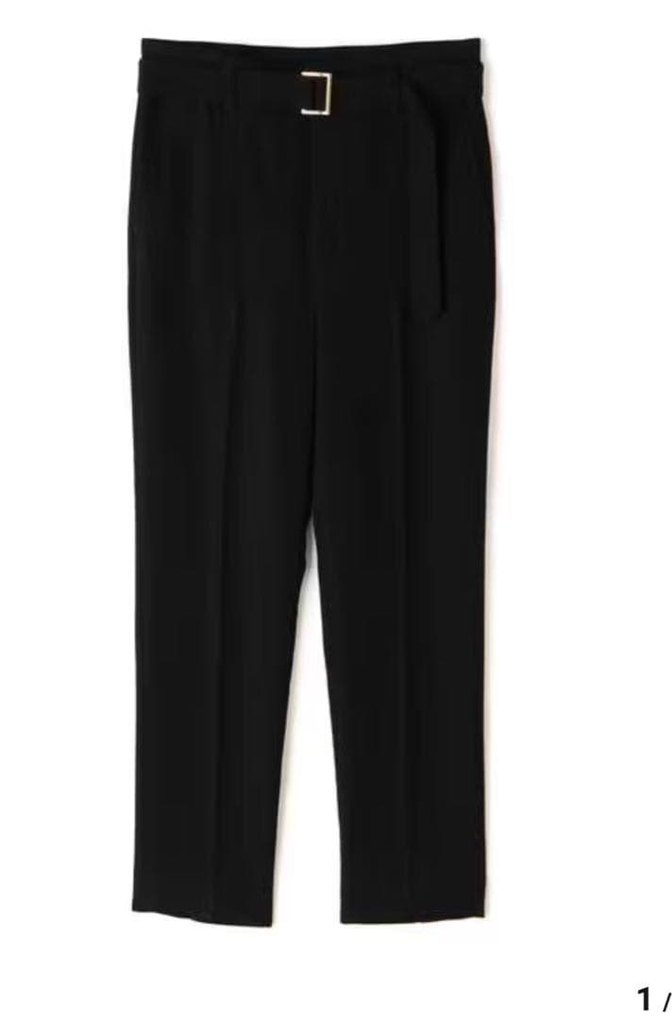 Kadınlar için siyah kumaş pantolon, normal kesim ve kemerli bel detayına sahip. Midi boy, desensiz ve ofis stiline uygun. Sentetik kumaştan yapılmıştır.