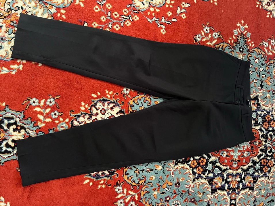 Kadınlar için siyah kumaş pantolon, normal kesim ve midi boy. Kemerli bel detayıyla ofis ve günlük kullanıma uygun.
