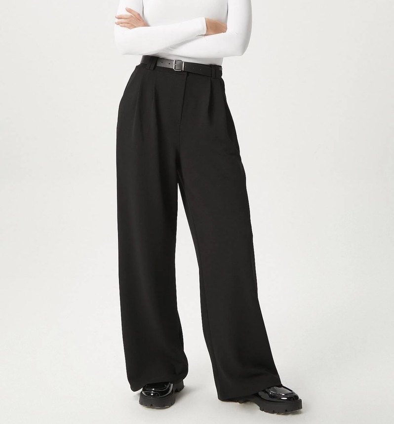Kadın Siyah Kemerli Kumaş Pantolon