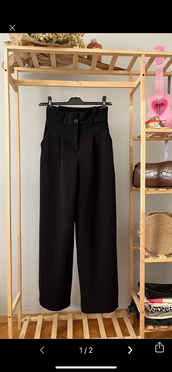 Kadınlar için siyah, kemerli, sentetik kumaştan yapılmış normal kesim midi pantolon. Ofis ve günlük sokak stili için uygundur.