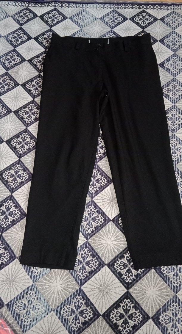 Kadınlar için siyah, kemerli, normal boy midi kumaş pantolon. Regular fit, sentetik kumaştan, günlük ve iş stiline uygun.