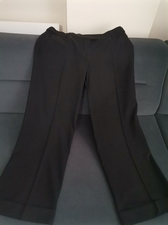 Kadınlar için siyah, kemerli, midi boyda, regular fit kumaş pantolon. Ofis ve sokak stiline uygun,rahat bir model boru paça az kullanılmış kullanılacak durumda kusuru yok.