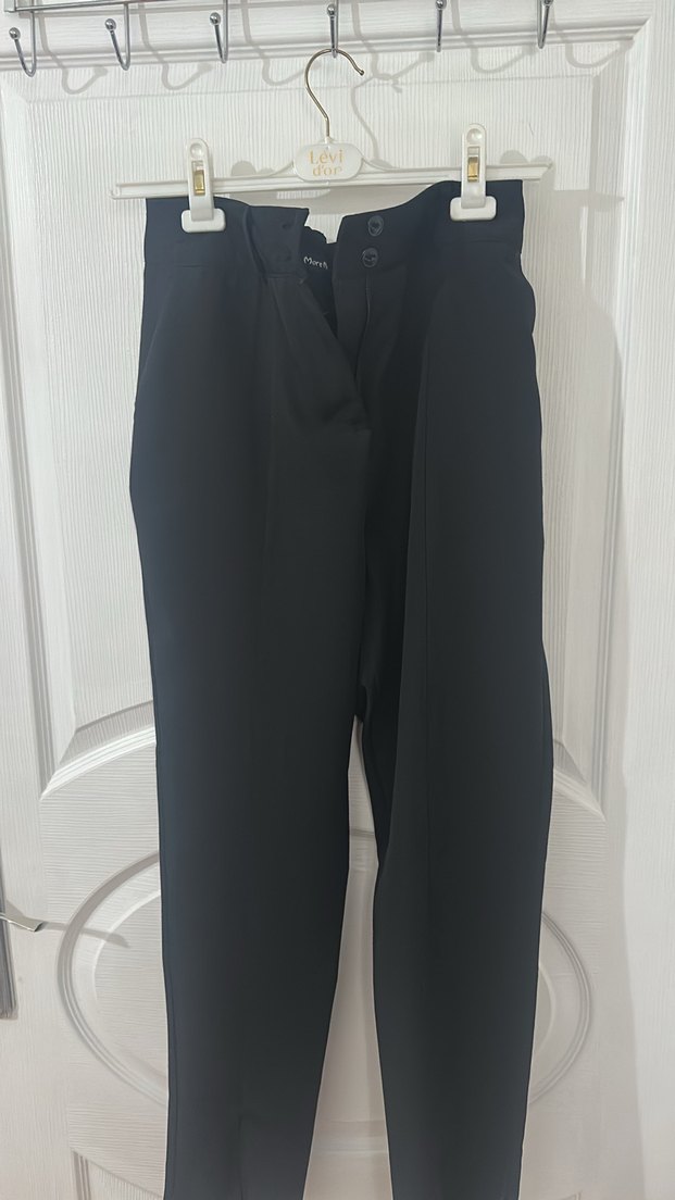 Kadın Siyah Kemerli Midi Kumaş Pantolon
