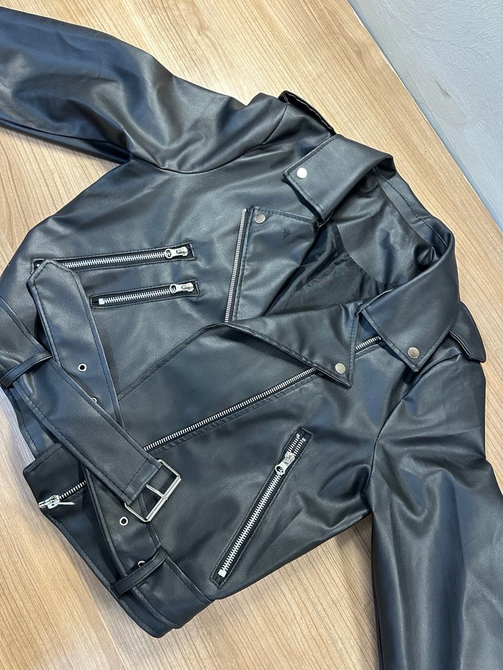 2 kere giydim sadece daha yeni aldım , doğum günümde hediye geldiği için bunu satıyorum S-M bedene olur Siyah deri biker ceket, kemerli, yaka detaylı ve askılı kollu tasarıma sahiptir. Regular kesim ve mini boydur, sokak stiline uygundur.