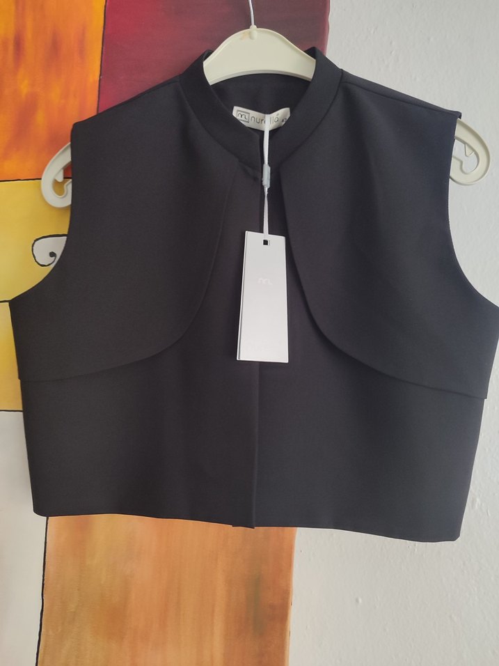 Kadın Siyah Kemerli Mini Kolsuz Yelek