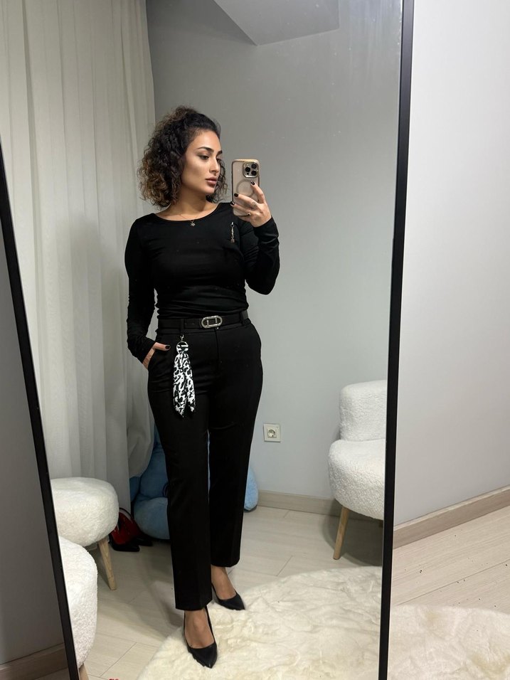 Pamuklu, , kemerli midi boy, regular fit kadın pantolon. Ofis ve sokak stili için uygundur.