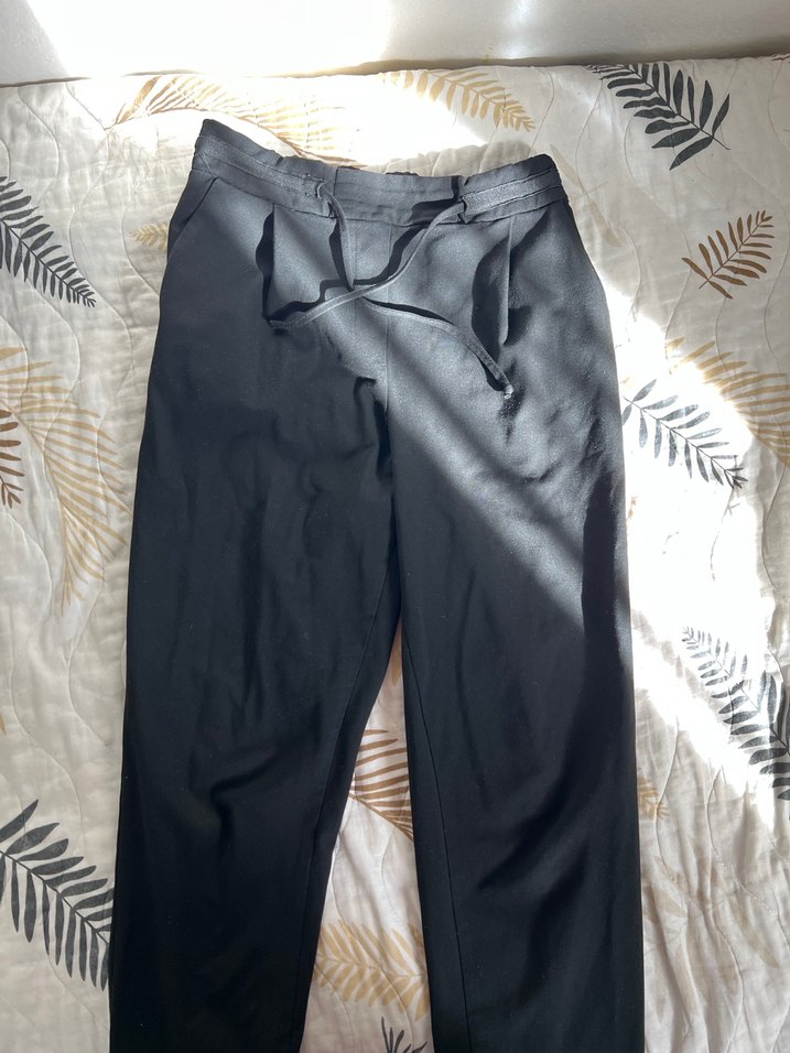 Kadın Siyah Kemerli Rahat Kesim Kumaş Pantolon