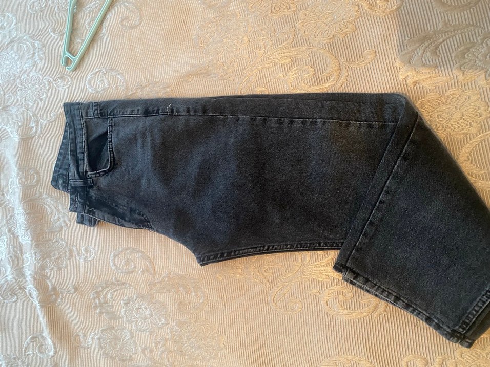 Siyah denim kumaştan, kemerli ve regular fit kesime sahip, normal boyda kadın jean. Günlük sokak stili için uygundur. Hiç giyilmedi paçaları yaptırıldı 160 bpyum var tam boy oldu sevemedım
