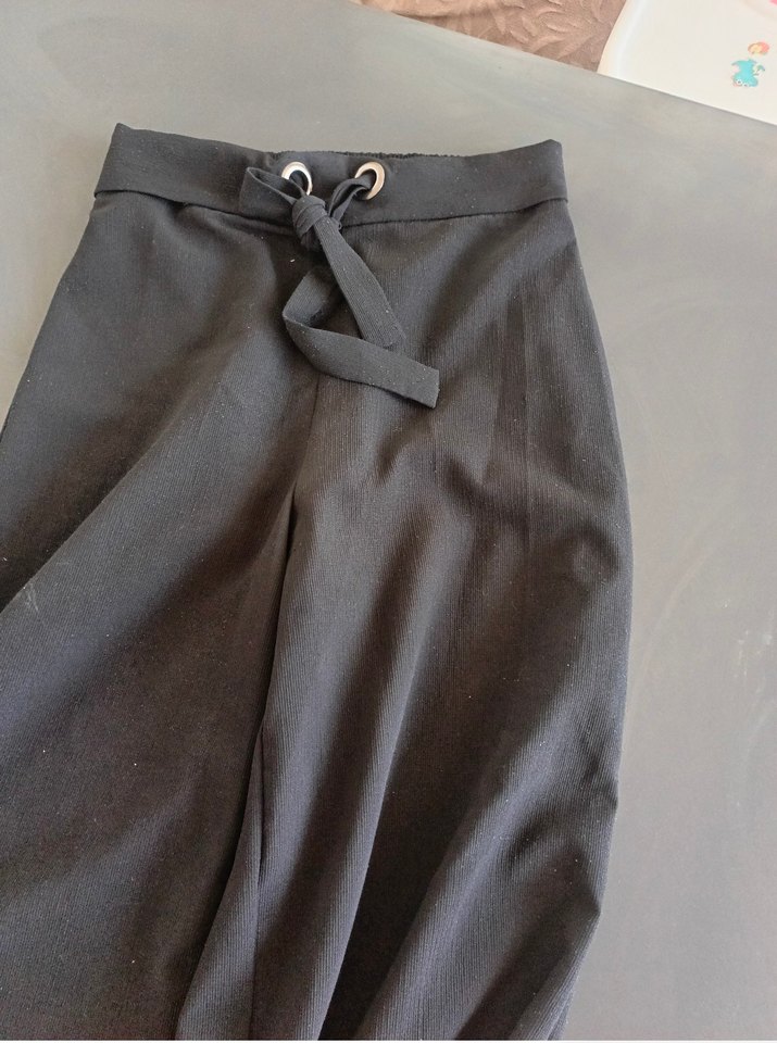 Kadınlar için siyah, uzun boy kumaş pantolon, bol kesim ve kemer detayına sahip, günlük kullanım için uygundur. duruşu çok güzel rahat şık pantolon