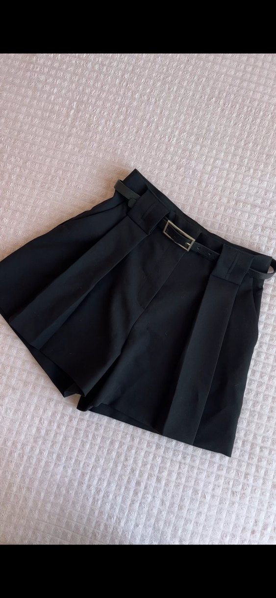 Kadın Siyah Kemerli Yüksek Bel Şort - Görsel 1