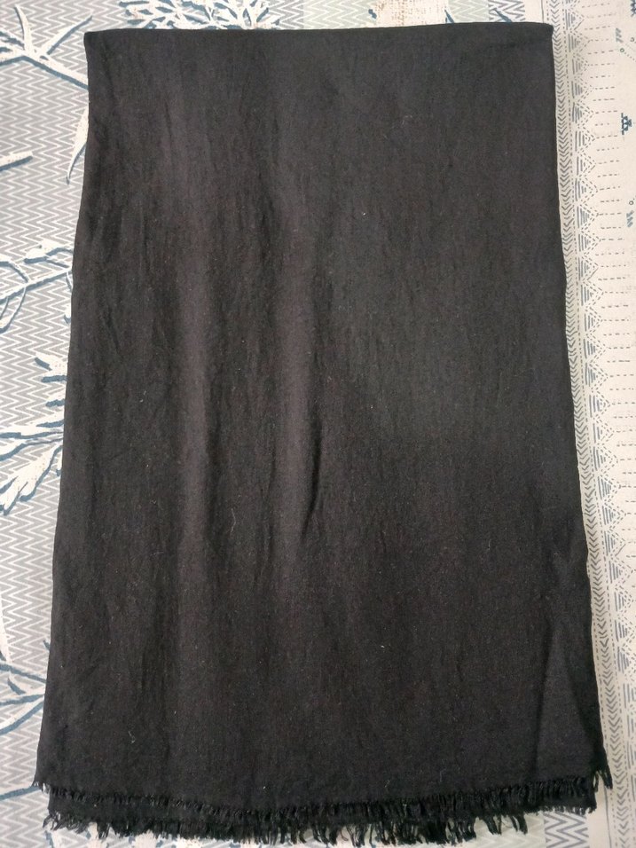 Kadın Siyah Keten Drapeli Şal