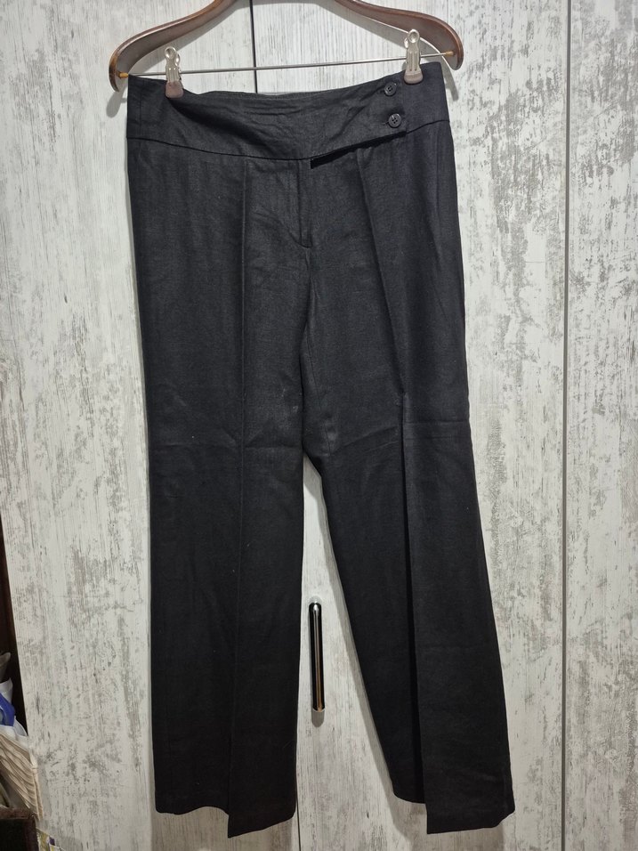 Kadınlar için siyah keten kumaştan, kemerli, normal boy ve regular fit pantolon. Ofis ve sokak stiline uygun rahat bir seçim.