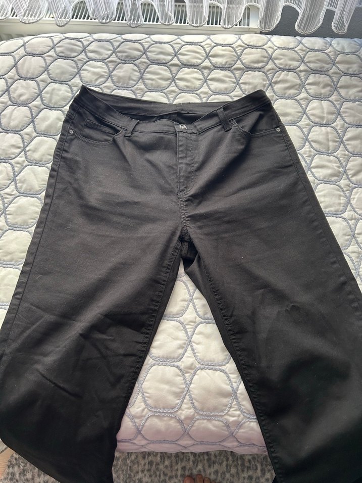 Siyah keten kumaştan üretilmiş, midi boy ve regular fit kadın pantolon. Minimal tasarımıyla günlük kullanıma uygun, zahmetsiz şıklık sunar. Beden etiketi kesilmis ama 44 beden