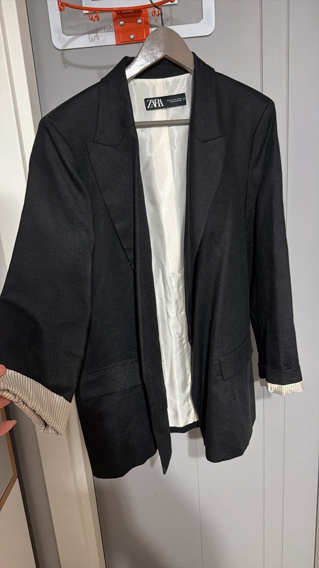 Kadın Siyah Keten Midi Blazer zara