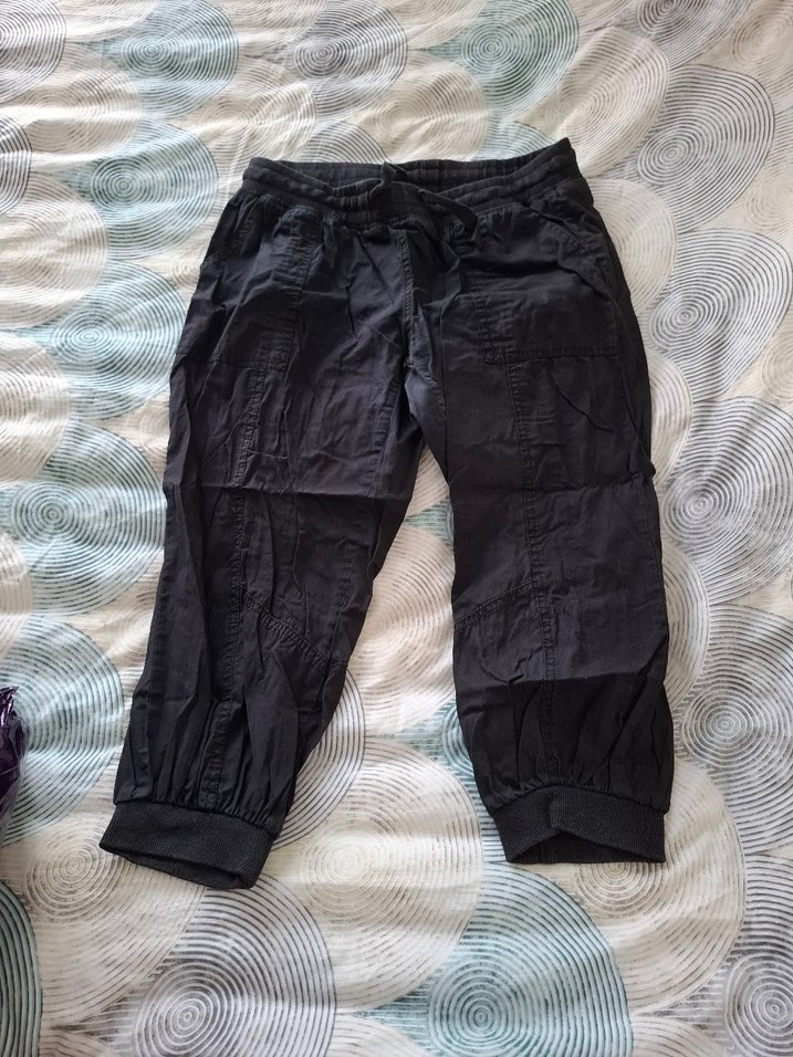 Kadınlar için siyah keten midi pantolon, bol kesim ve kemerli bel ile rahat sokak stili ve açık hava kullanımı için uygundur.