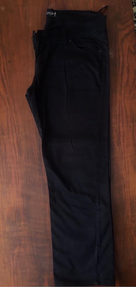 Kadınlar için siyah kumaştan, kemerli ve midi boyda, rahat kesim bir pantolon. Minimalist tarzda günlük kullanıma uygundur.