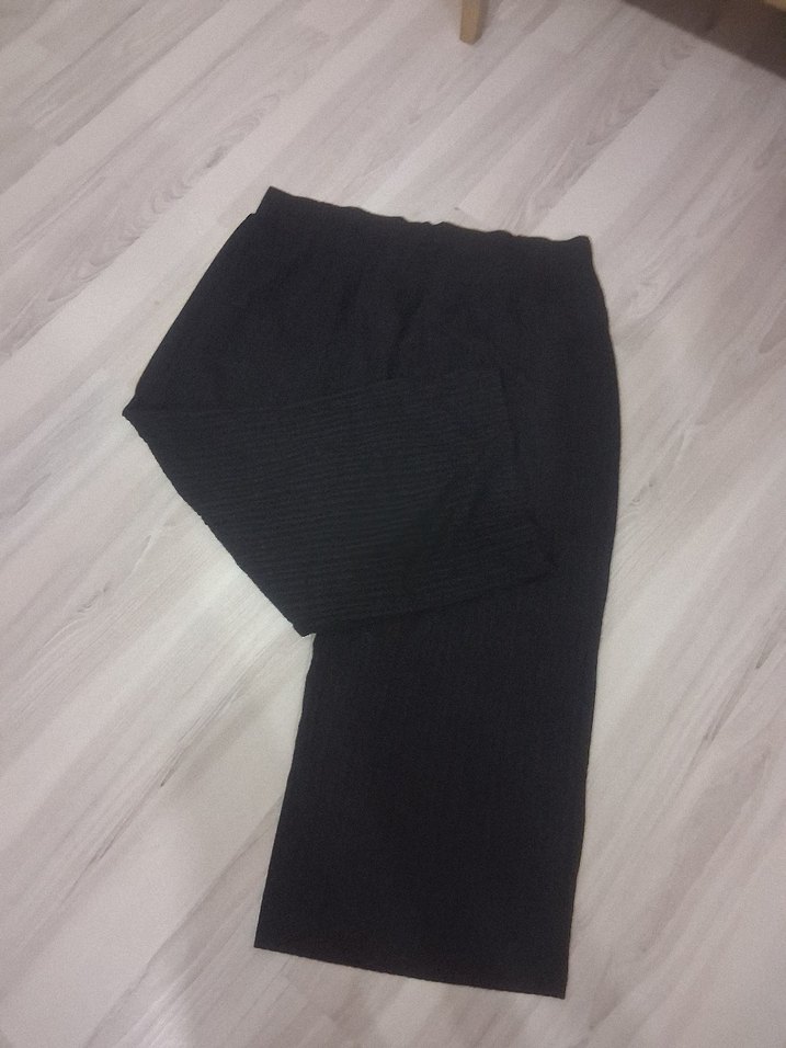 Kadın Siyah Keten Pilili Midi Kumaş Pantolon 2 adet