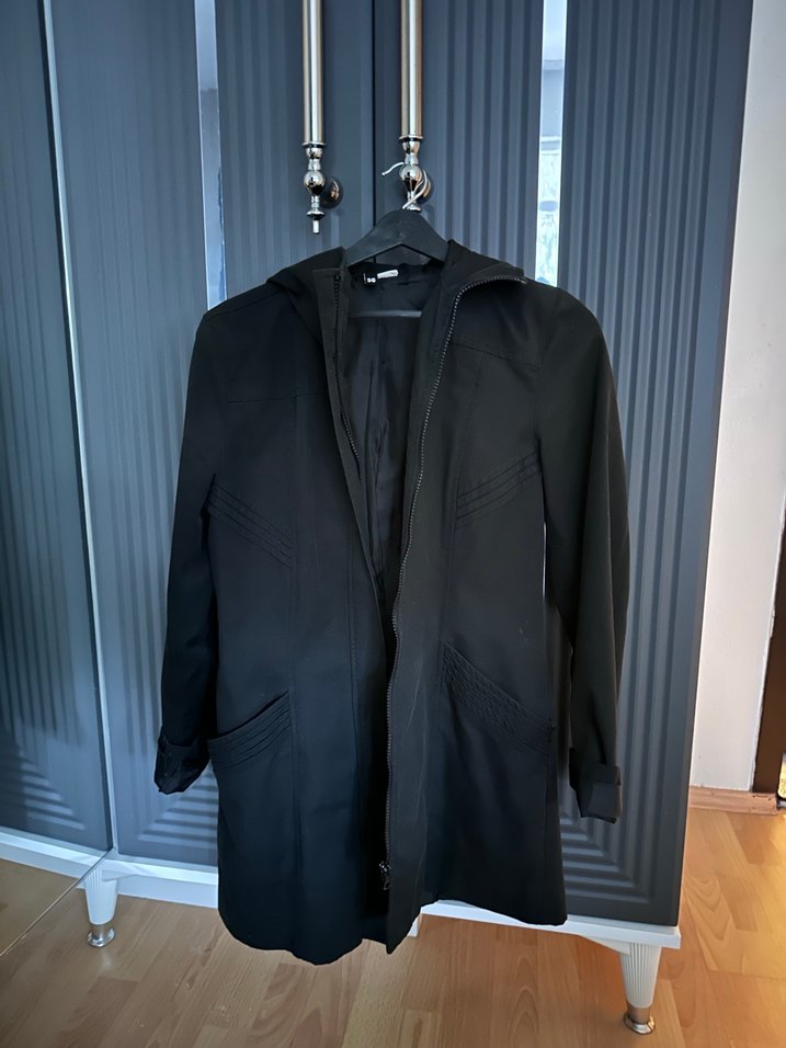 Kadın Siyah Keten Trençkot