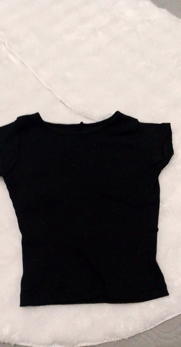 Düz siyah, kısa kollu, esnek, yuvarlak yakalı ve vücuda oturan sırtı acık Düz ve basic gotik tarzda, yumuşak sentetik kumaştan yapılmıştır.
