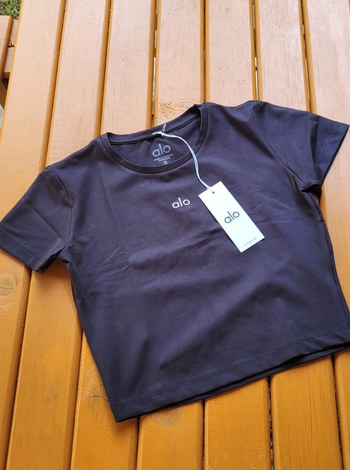 belize esnek kumaştan, kısa kollu ve bisiklet yaka siyah crop bady tişört. 'alo' baskısı ile sade ve şık, günlük giyime uygun.boydan kısadır.S M L bedenler