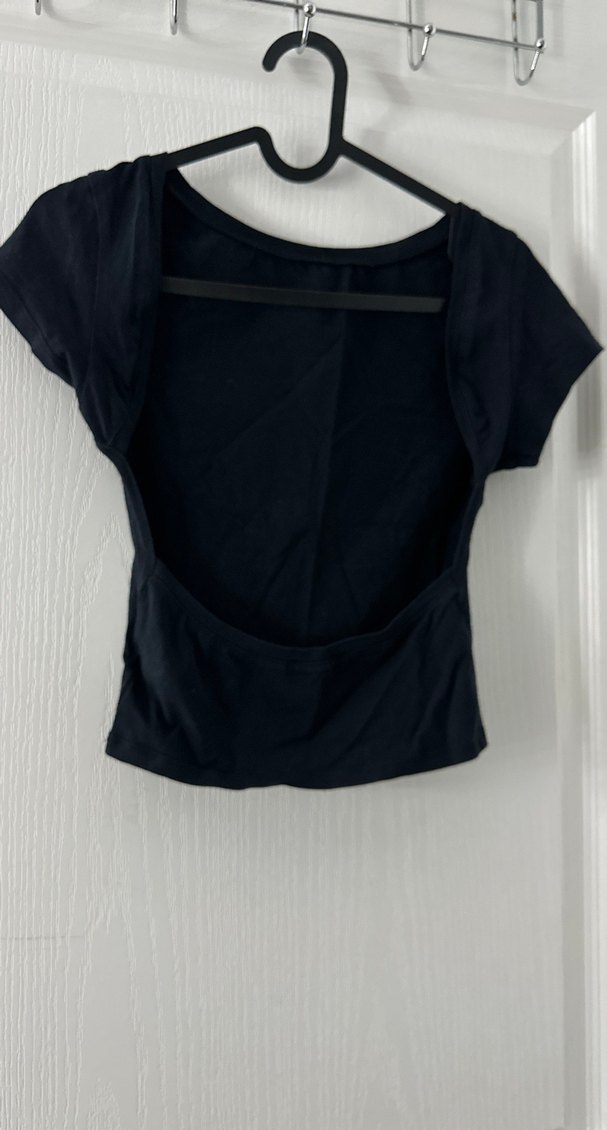 Kadın Siyah Kısa Kollu Sırt Dekolteli Crop Top