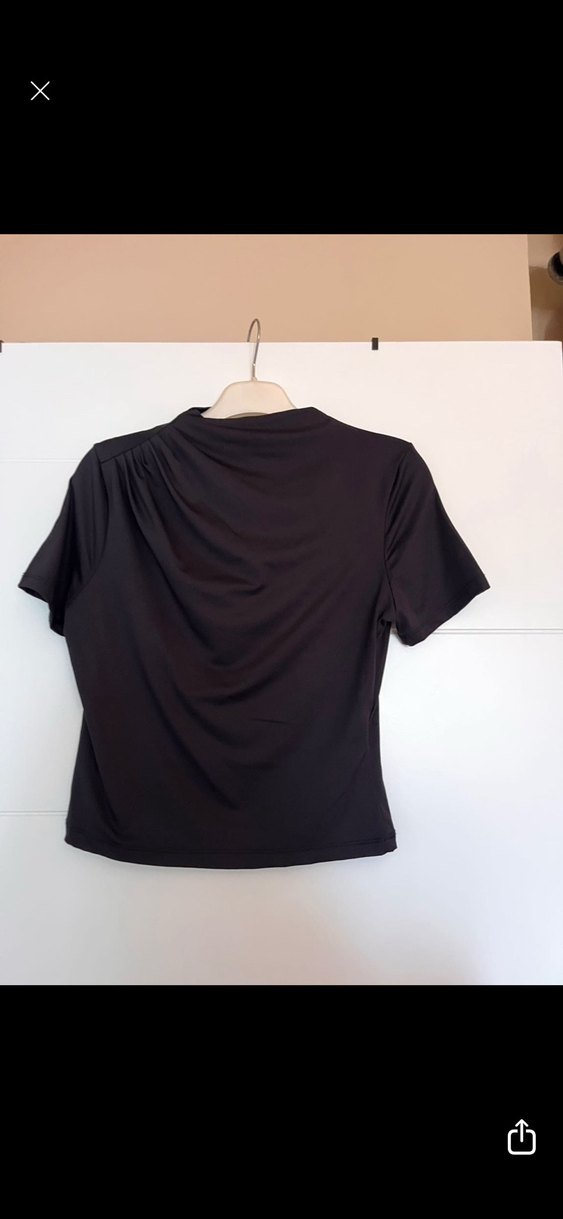Kadın Siyah Kısa Kollu Yüksek Yakalı Tişört
