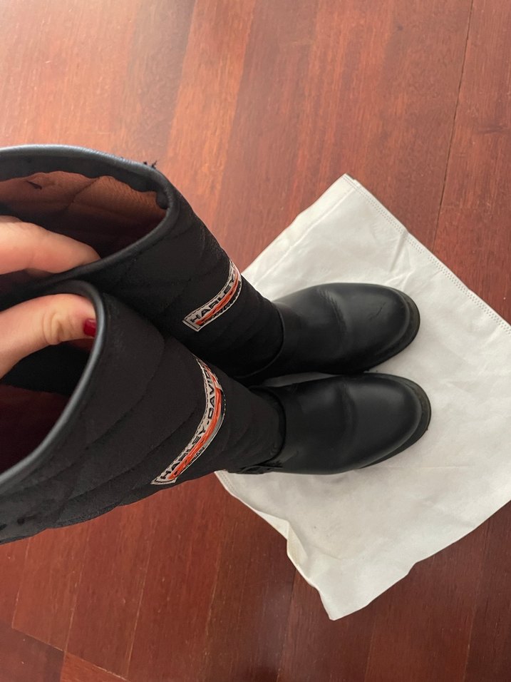 Siyah renkli, fermuarlı, blok topuklu botlar. Çok az kullanılmıştır. Max 2-3 kez giyildi. Ürün tam kalıptır, 38 numaradır. Kullanımdan kaynaklı birkaç deformasyon mevcut. Kullanımı engelleyen herhangi bir durumu yok. Çok sıcak tutuyor. Güncel fiyatı 5.500 civarı :)
