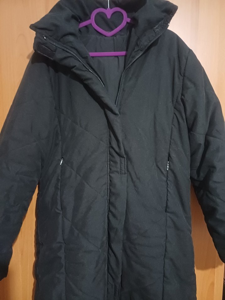 Kadın siyah kışlık kaban çıtçıtlı yaka ve fermuarlı ceplere sahiptir. Rahat kesim, uzun kollu ve sıcak tutan polar malzemedendir. Sokak stili için uygundur. ❄️ az kullanılmıştır büyük bir sorunu yok