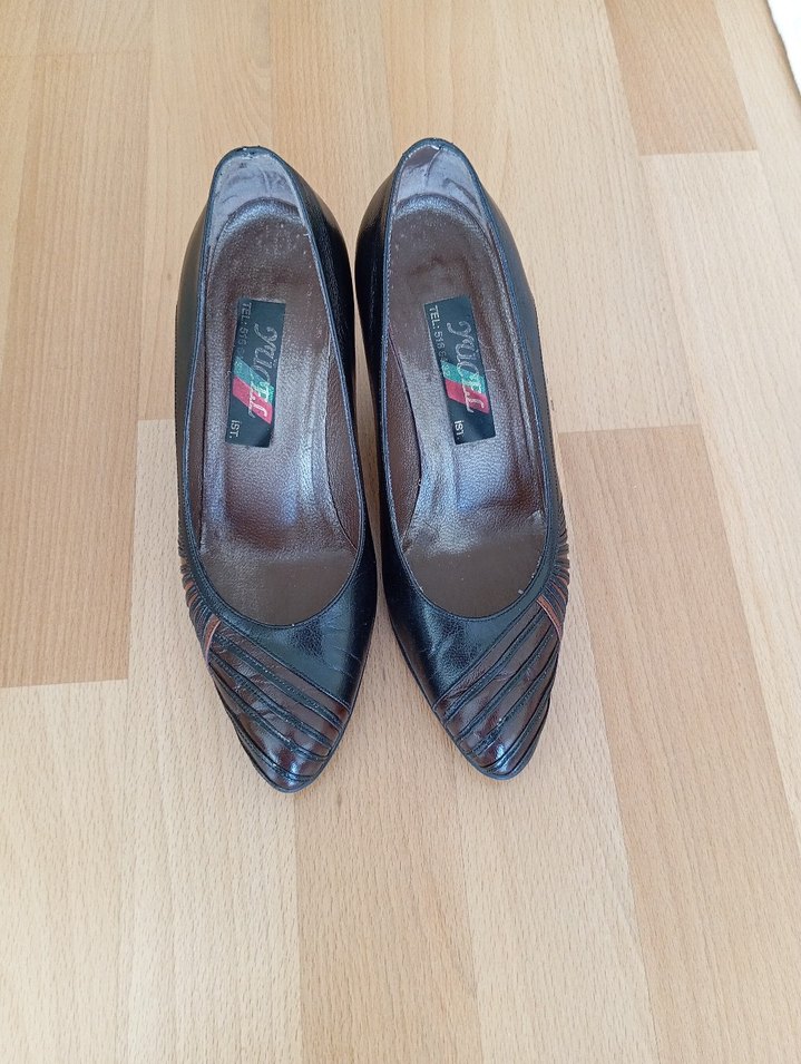 Klasik tarz topuklu ayakkabı. Topuğu 7 cm'dir. Ürün 36 numaradır.