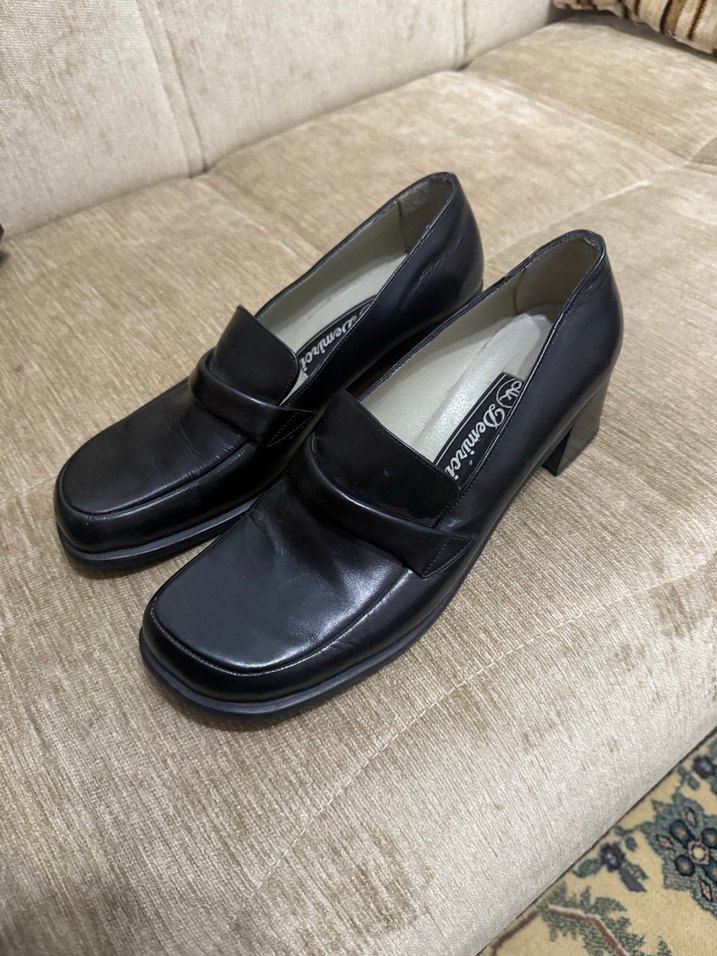 Siyah klasik kadın ayakkabısı, blok topuklu, düz yüzeyli ve ofis kullanımı için zahmetsiz şıklık sunar.