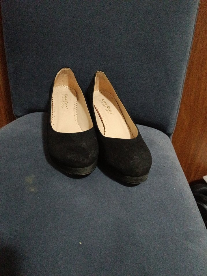 Kadınlar için siyah, blok topuklu, kauçuk malzemeden yapılmış klasik ayakkabılar. Minimalist ve normcore stilde, ofis kullanımı için uygun, desen içermeyen rahat şıklık sunar.
