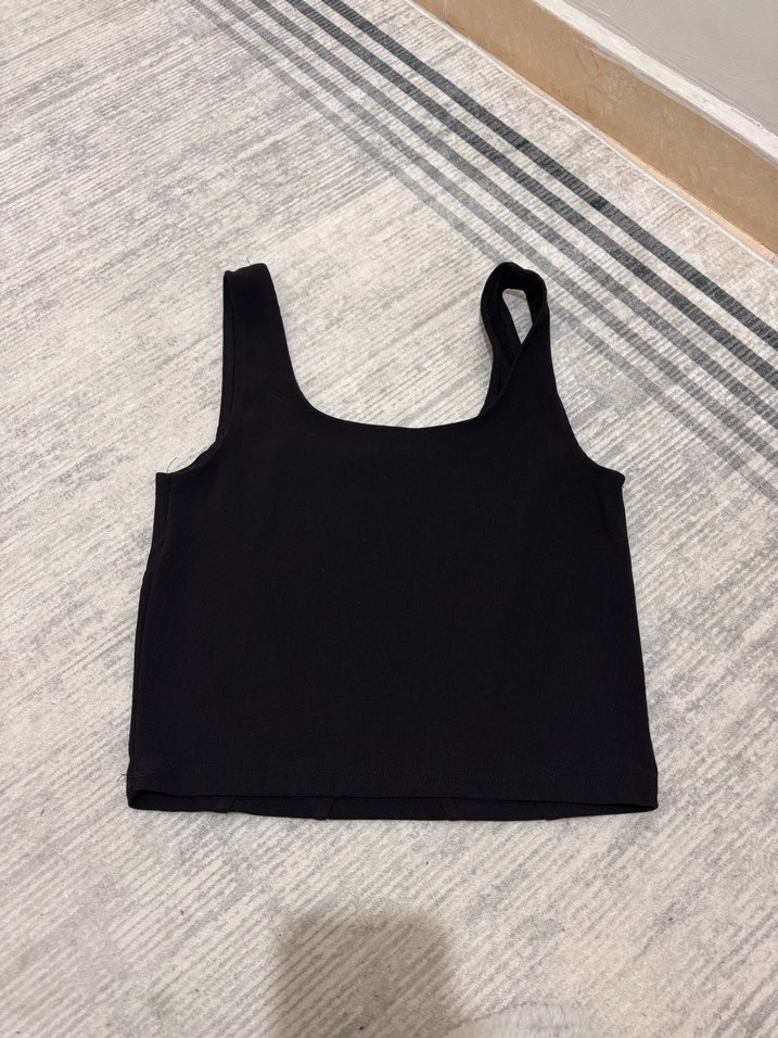 Siyah renk, kolsuz ve tekdüze tasarıma sahip bu crop top, tek tip sentetik kumaştan üretilmiştir. Günlük kullanıma uygun, sade ve şık bir görünüme sahiptir.