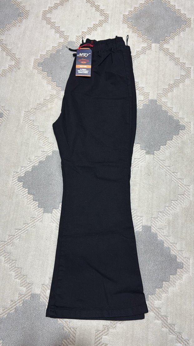 Kadınlar için siyah midi uzunlukta, regular fit kesim ve kot kumaştan yapılmış pantolon. Günlük kullanım için rahat ve şık bir görünüm sunar. İspanyol paça