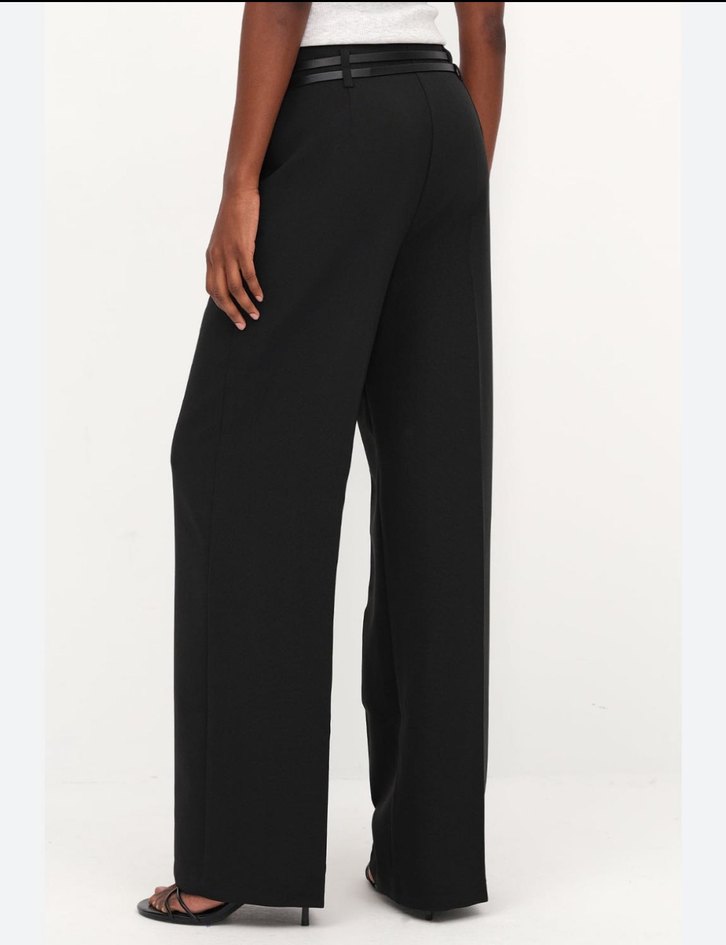 Kadınlar için regular fit, siyah sentetik kumaş pantolon. Midi boy, çağdaş tarzda ve iş ortamına uygun.