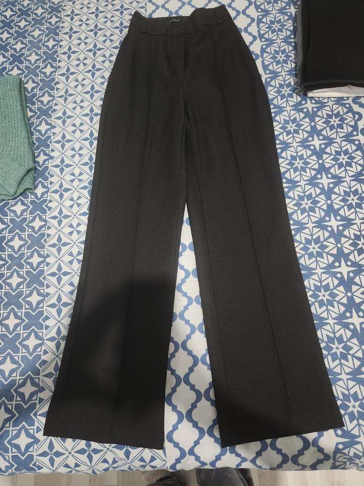 Siyah, midi boy, regular fit kadın kumaş pantolon. Ofis ve sokak stiline uygun, sentetik dokulu kumaştan üretilmiştir. 45 kg 155 boya göre yaptırılmıştır.