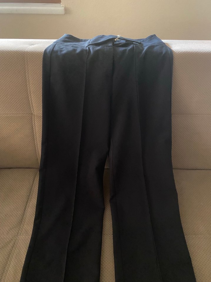 Kadın siyah, kumaştan yapılmış, ve normal boy midi pantolon, ofis için uygundur.