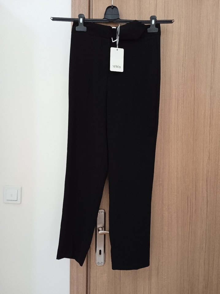Kadınlar için siyah kumaştan, normal kesim ve midi boy pantolon. Kemer detayıyla iş ve ofis ortamına uygun.