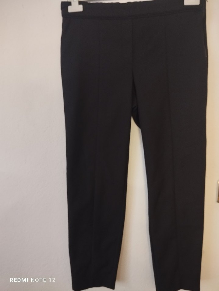 Bel ölçüsü 42 cm esnek değil boy belden 91 cm. içe katlanmıs pay 5 cm. paça genişliği 15.5 cm. Siyah, midi boy, düz kesim kadın kumaş pantolon. Ofis stili için şık ve rahat, sentetik kumaş. Sayılı kullanılmıştır.Kemer kısmında yırtık var