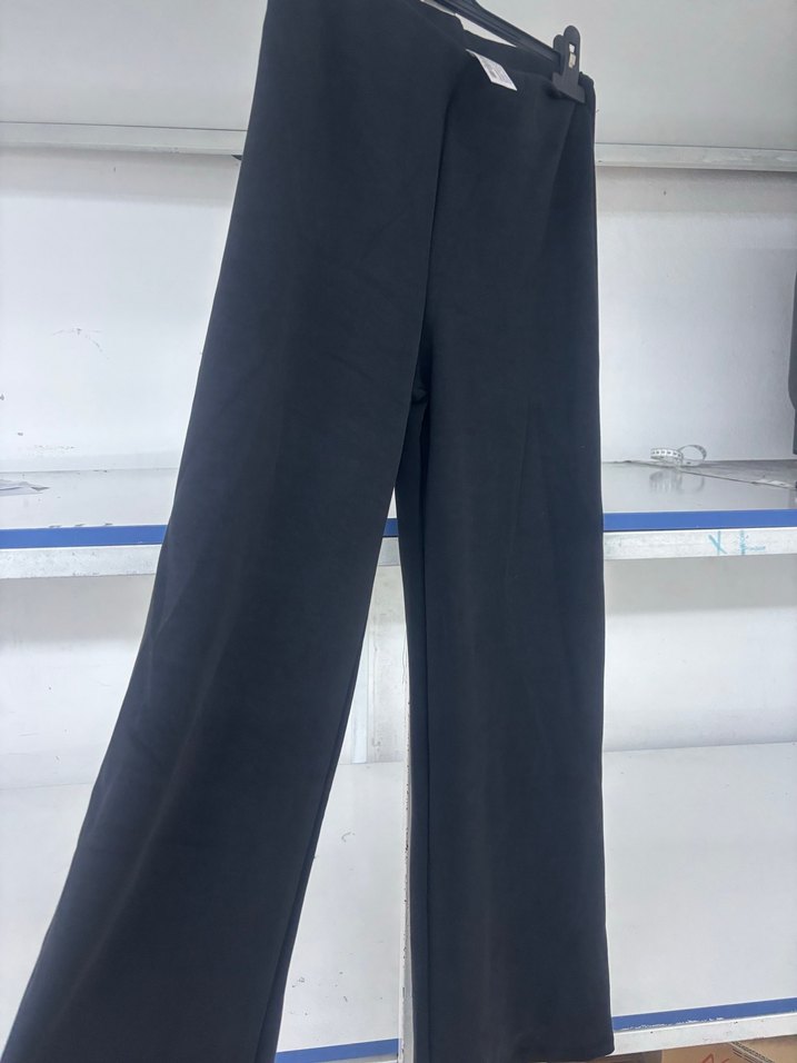 Kadınlar için siyah kumaş pantolon, regular fit ve midi boyda, yumuşak sentetik kumaştan üretilmiştir. Ofis kullanımı için uygun sade ve desensiz tasarıma sahiptir.