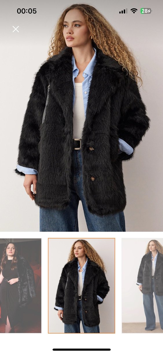 Kadınlar için midi boy, kürk detaylı, notched lapel yakalı, uzun kollu ve regular fit ceket, rahat sokak stili sunar. Sadece 1 kere giydim kusuru yok. Bana biraz bol geldiği için satıla koyuyorum.