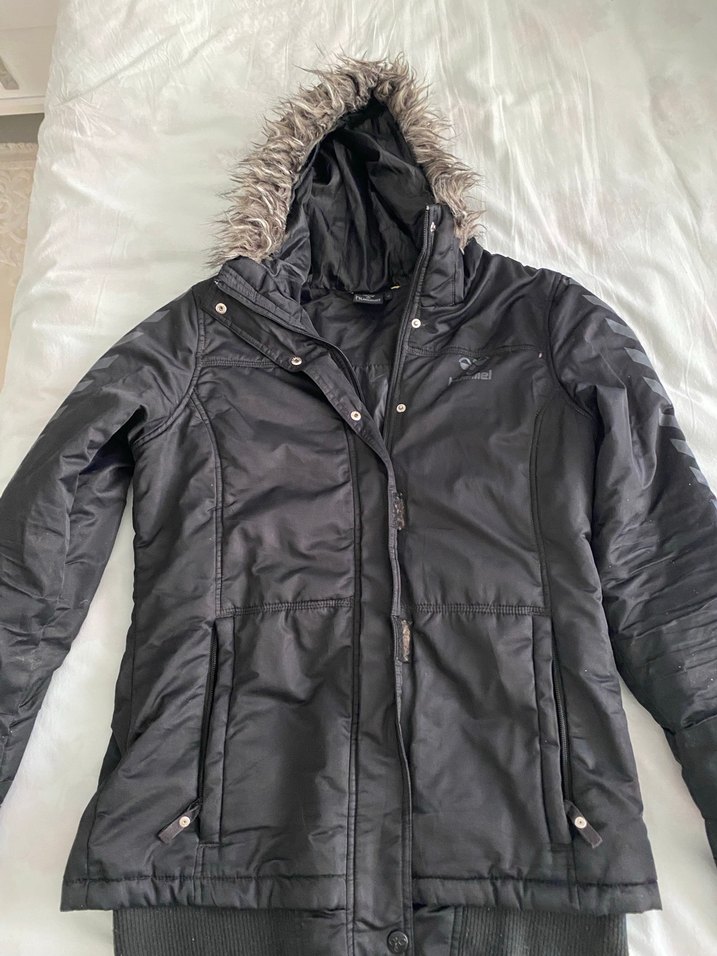 Fermuarlı, kapüşonlu ve kürklü detaylı siyah kadın kaban. Orta boy, uzun kollu ve rahat kesimiyle günlük kullanıma uygundur. ❄️