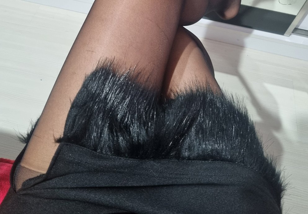 Siyah, straplez ve askılı kolları olan, vücuda oturan midi elbise, cesur gotik tarz için kürk detaylıdır.