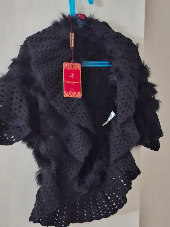 Şal yaka triko yelek hırka abiye üzerine bolero gibi de giyilebilir, günlük spor kıyafetlerin üzerinde de çok şık ve hoş durur. Sıfır ürün eriketi üzerinde orijinal marka yumuşacık ve sıcacık tutan bir triko. Aynısının gül kurusu, pudra pembesi gibi bir renk tonunda olanı da var o 950 tl. İkisi 1700 tl olur. Kadın siyah örgü şal, kürk detaylarıyla sıcak ve gotik tarz sunar, moda ve avangart görünümü tamamlar.