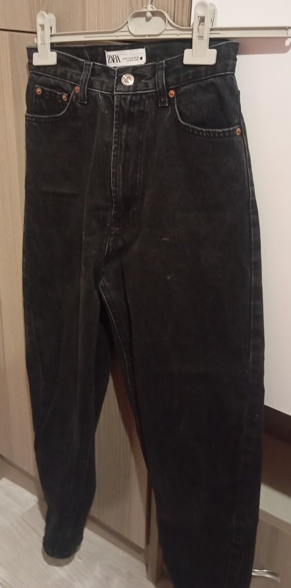 Kadınlar için siyah renkli, normal boyda, loose fit denim jean. Sokak stili ve günlük kullanım için uygundur. Desensiz ve rahat bir görünüme sahiptir.