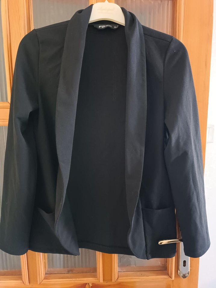 Siyah renkte, notched lapel yakalı, ve uzun kollu kadın blazer ceket. Sentetik kumaştan yapılmış, midi boyda ve regular fit kesime sahiptir.