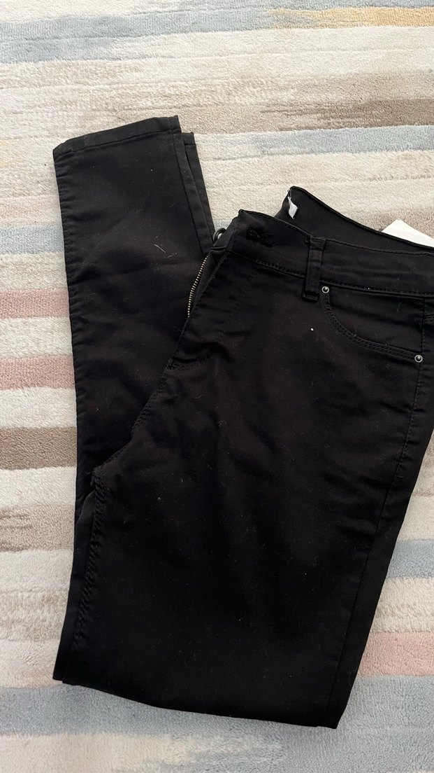 Siyah midi boy, regular fit denim pantolon. Sokak stili ve rahat kullanıma uygun, zahmetsiz şıklık sunar.