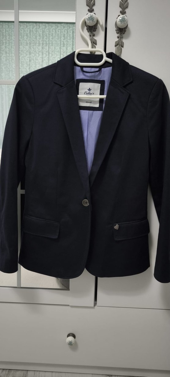 Siyah, düğmeli, notched lapel yakalı kadın ceketi. Uzun kollu ve regular fit olup, midi boyda sentetik kumaştan üretilmiştir. Ofis ve gotik tarzına uygundur.