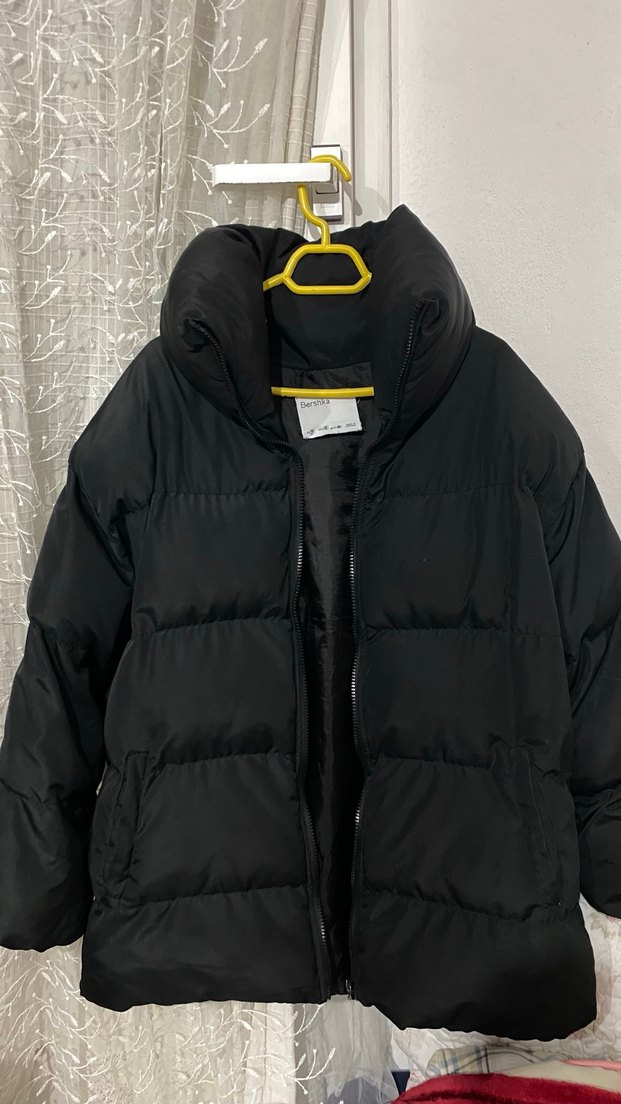 Kadın Siyah Midi Boy Kışlık Mont BERSHKA